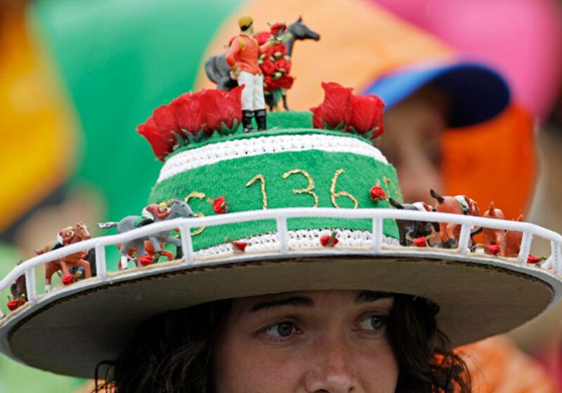 Erica Harris of Omaha, Neb., wears a Derby hat.