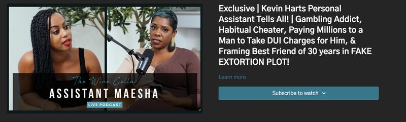 The title of Kebe’s interview on her website reads, “Kevin Harts Personal Assistant Tells All! | Gambling Addict, Habitual Cheater, Paying Millions to a Man to Take DUI Charges for Him, & Framing Best Friend of 30 years in FAKE EXTORTION PLOT!”