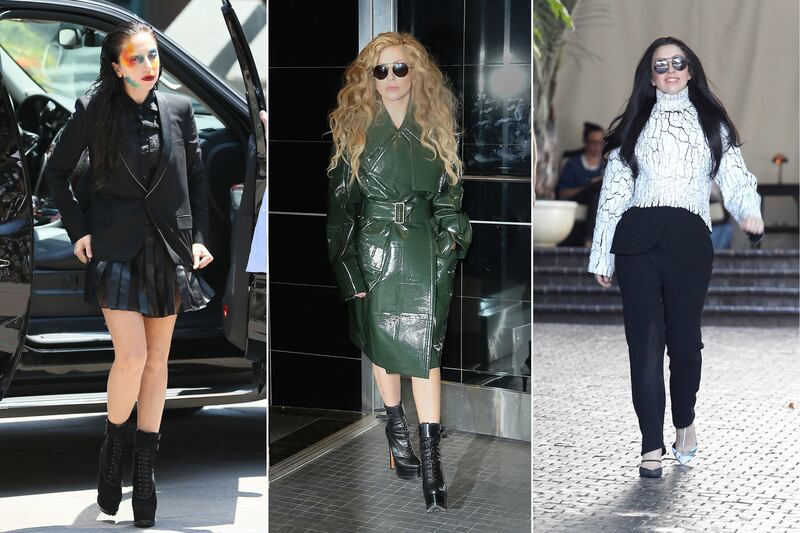 Now, all that seems to be changing. As her stylist Brandon Maxwell told WWD in July, the singer’s new fashion direction would be “more toned down and pulled back and chic.” He added: “But it’s also that we’re making suits out of things that they would not normally be made out of, like plastic, but they’re super well-tailored and clean. Maybe she’s just wearing a simple catsuit and a head wrap like she’s wearing here, but we sort of do the craziness on the face.” That explains Gaga parading around town with a face painted in wild colors.