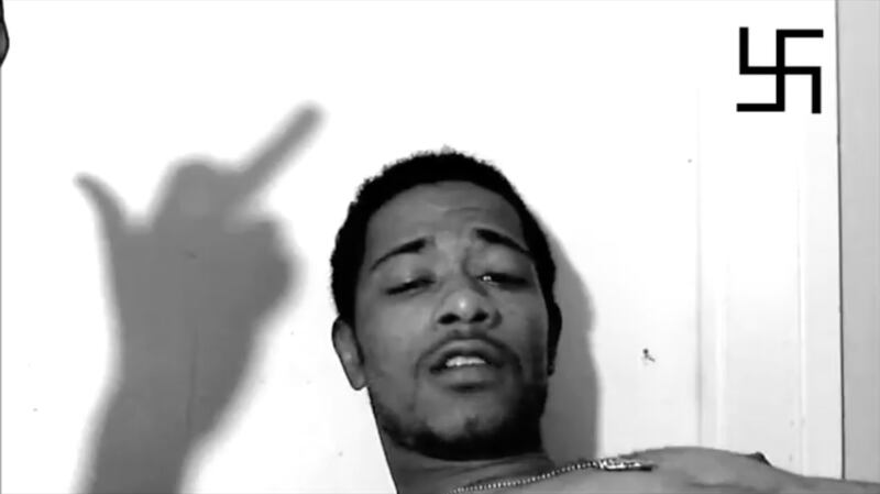 The video in question, which was obtained by The Daily Beast, was posted on YouTube in 2013 and has since been removed. Titled “Swastikas and Bones,” the aspiring musician raps as he leans back against a wall with his shirt off and a swastika digitally superimposed on his forehead. Eventually, the symbol fades away but then is shown in the upper-right-hand corner in bright yellow.