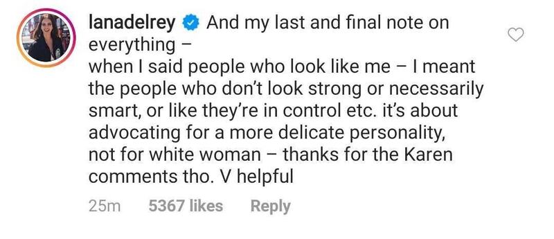 Hours after her initial post, Del Rey addressed some of the blowback in the replies.