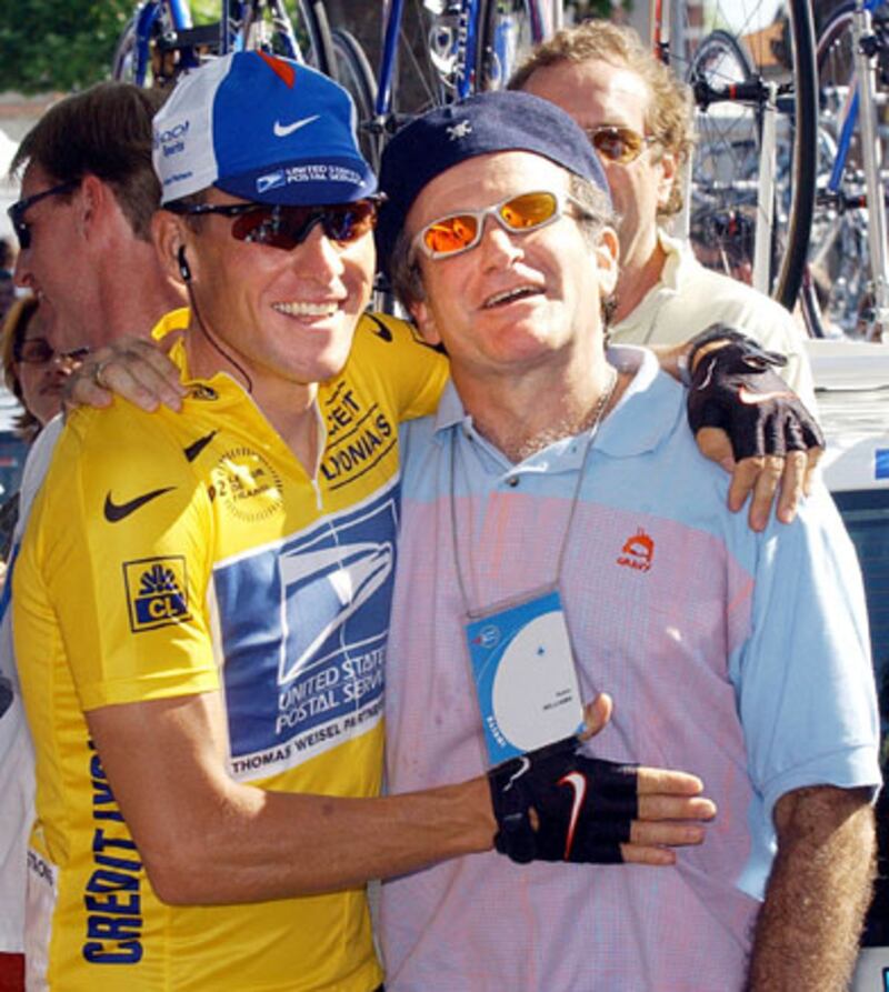 Robin Williams, a longtime cycling fan, celebrated with Armstrong after the 12th stage of the Tour in 2003.