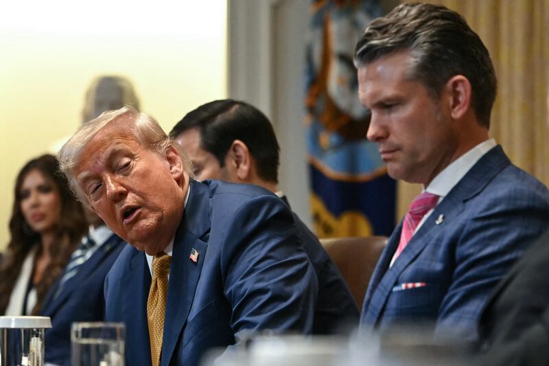 CNN’s Kaitlan Collins was the one who pressed Trump on who ordered the suspension of weapons to Ukraine as it fights off Russia’s invasion. NBC News and CNN reported that the decision was made solely by Defense Secretary Pete Hegseth—who was sitting right next to Trump during Monday’s Cabinet meeting—and that the president himself wasn’t even informed of the decision.