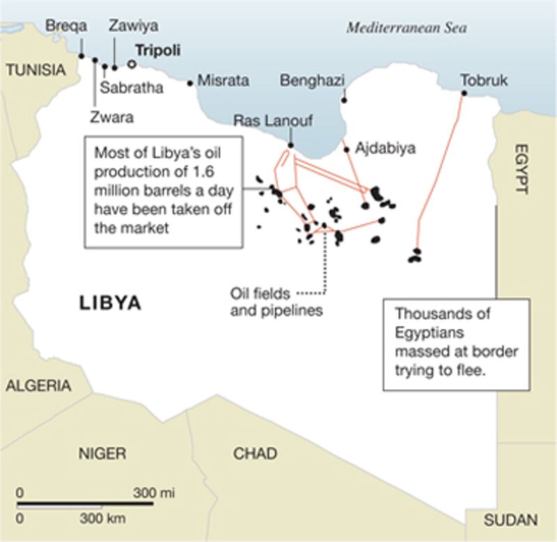 Libya’s opposition has thus far held off loyalist militias in Zawiya, a key city 30 miles from Tripoli. (See map below.) But Gaddafi’s mercenaries made another attempt Friday to retake Zawiya, and the clash was bloody: At least 50 people were killed, one witness told Reuters. Thirty of those were civilians, and the city’s hospitals are full of the injured. “They could not find a space for the casualties,” a second witness said. There was also fierce fighting in Ras Lanuf, and police in Tripoli fired tear gas on peaceful protesters and killed those who fell to the ground wounded. On Friday, the U.S. stepped up its humanitarian aid to the country, sending two military planes full of emergency supplies to neighboring Tunisia.