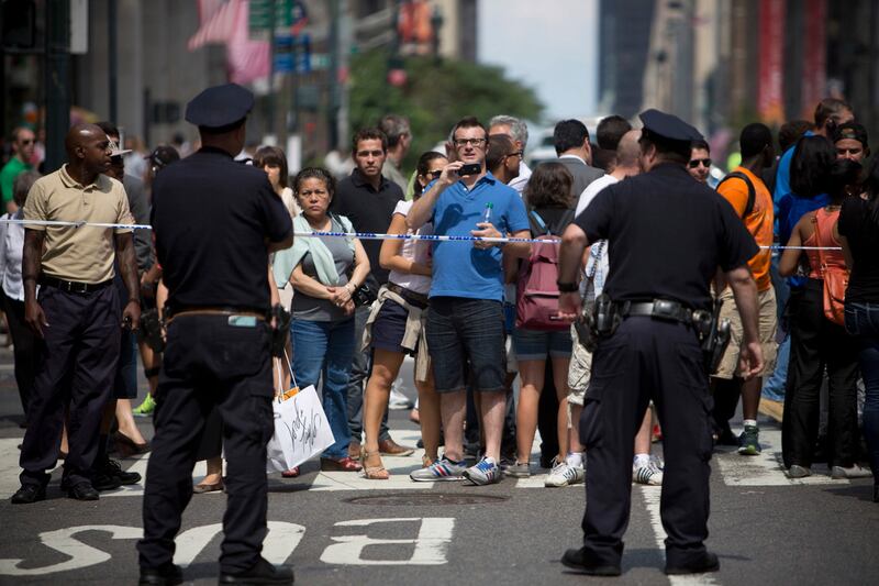 She would later be told that the man had just shot and killed a former clothing company co-worker around the corner on West 33rd Street and stashed the gun in a black shoulder bag before trying to slip away in the Friday morning crowd on Fifth Avenue. Some construction workers pointed him out to the two cops who are posted at the building’s entrance as a counterterrorism measure. The man saw the cops and took the gun back out of the bag with a furious expression on his face.