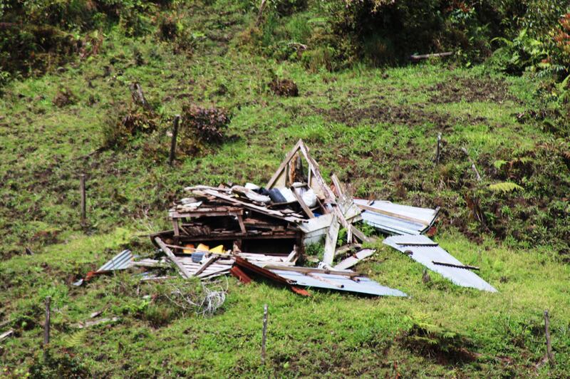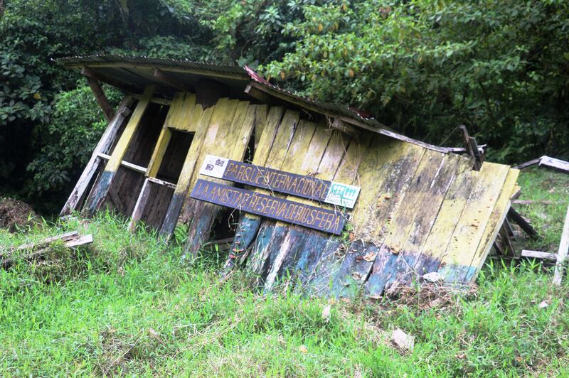 "A collapsed shack on the Bocas del Toro side of the Continental Divide, as seen from the Pianista trail, the last known whereabouts of the "Holandesas."