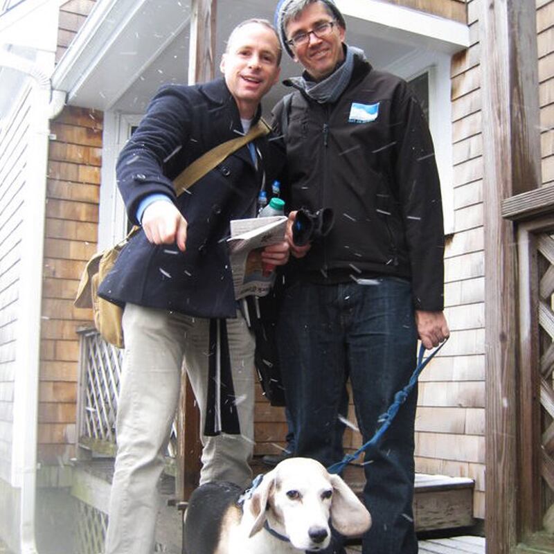 Bozzie was a rescue animal, previously housed in a laboratory, and understandably nervous. After Bozzie died, the couple took in Toby, a much-more languorous beagle-basset, and a rescue like Bozzie, though not from a lab. (Toby’s gorgeous, pendulous ears are their own wonder of the world.)
