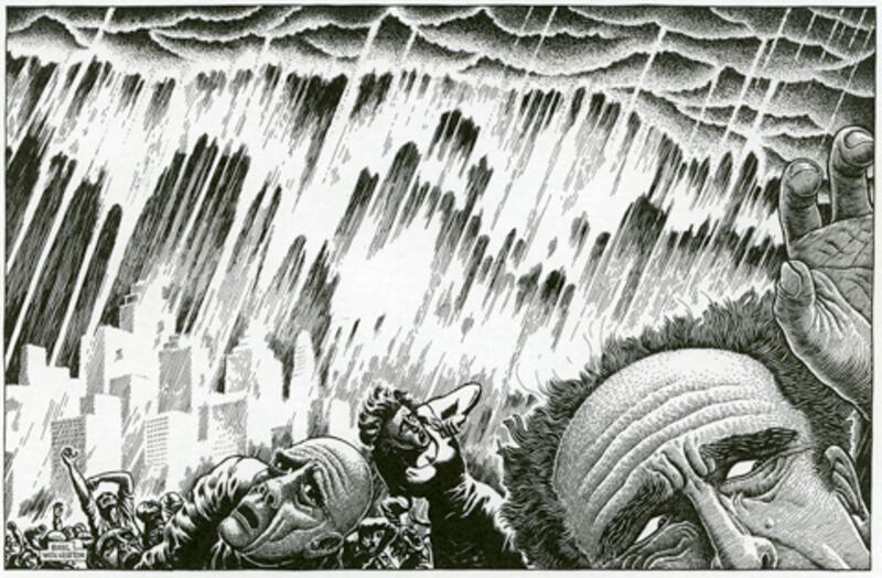 In his statement for the show, Jamie insightfully wrote, “Eyeballs pulled and ripped out of their sockets, rotten zigzagged buck teeth pointed in every crooked direction, wild scraggly yarn hair, faces and bodies pulled inside and out, twisted into abstract knots distorted beyond recognition: Basil Wolverton is my Picasso.” He further stated that he was motivated to organize the Gladstone exhibition because of the shocking omission of Wolverton’s work in the 2005 traveling exhibition Masters of American Comics.