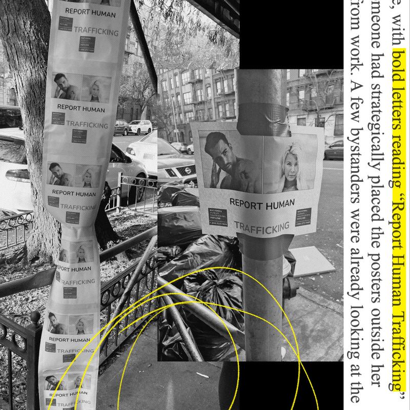Someone posted identical flyers on telephone poles throughout her neighborhood in December 2021, apparently mapping her route from her apartment to the subway. “Although she took down the posters she saw, new ones would be posted the following day,” the filing states.