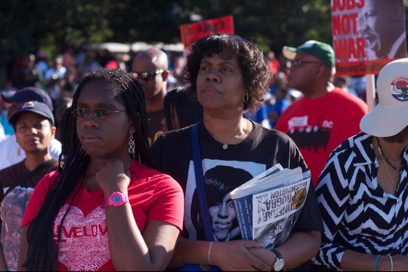 The only way to commemorate this legacy is with demands for justice and equality, and to its credit, Saturday’s event had speakers who did just that, including Julian Bond and Rev. Lennox Yearwood, president and CEO of the Hip Hop Caucus. “People here can meet, discuss, brainstorm, and further our social justice ambitions,” said DeAnna Murphy, a community organizer from St. Louis, Mo., who kept a small American flag flying from her bag for the occasion. Others, like a group of young activists, asserted the personhood of undocumented immigrants with a bullhorn and a chant. “Immigrant rights are here to stay,” they said.