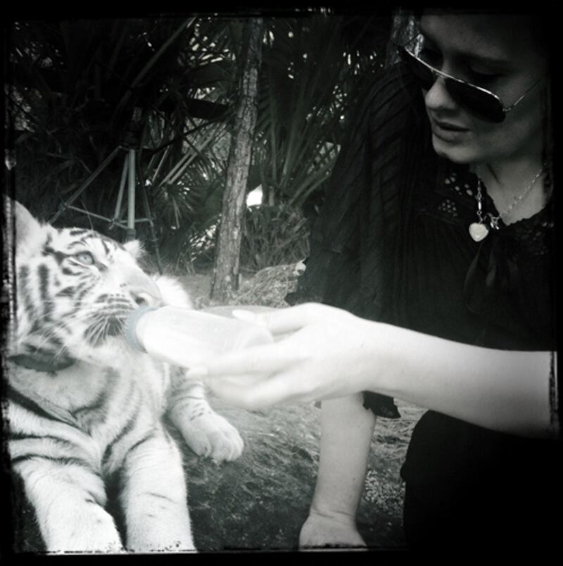 One of the most successful, chart-topping singers of 2011, Adele recently took some well-deserved time off to meet (and feed) a baby white tiger. The singer tweeted a photo of herself holding a bottle up to the young feline’s mouth and wrote, “Just met a baby white tiger!! Happy new year y’all xx.”