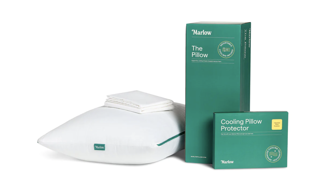 Fortunately, Brooklinen recently released a new pillow subbrand Marlow, designed specifically to solve this problem. The new Cooling Pillow Protector is built with Stay Cool Technology that helps increase the airflow and breathability of the protector to more easily regulate the temperature. Furthermore, the pillow protector wicks away sweat, extends the life of your pillow, and has an antimicrobial coating to keep your head nice and clean each night. The Cooling Pillow Protector is machine washable and is available in two sizes to fit your exact pillow size needs. Beyond this, you can now buy the Marlow Sleep System which is a new set from the company made up of the classic Marlow Pillow and the new Cooling Pillow Protector for the most optimal sleep each and every night.