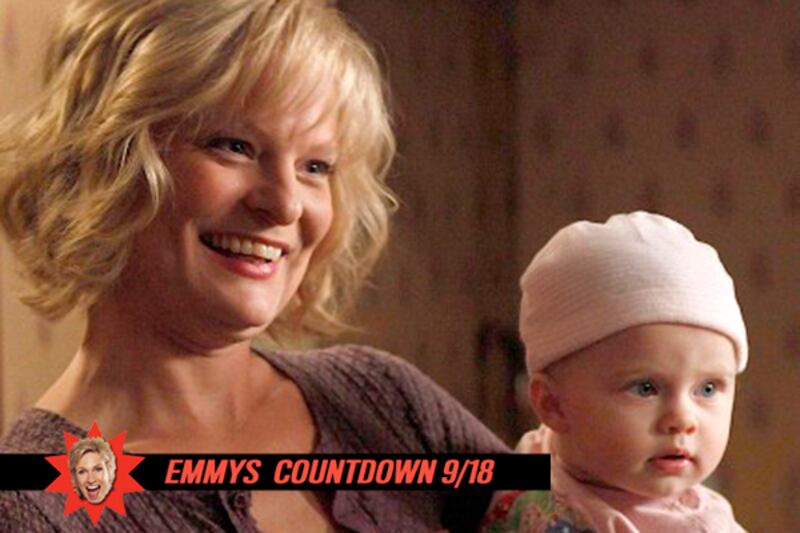 Three-time Tony nominee Martha Plimpton has now earned her second Emmy nomination—this time, for her first starring role as a TV regular on Fox’s Raising Hope. Plimpton plays Virginia, the center of the wacky Chance household, who cleans houses for a living and loves her family to pieces. Virginia was raised by her grandmother, Maw Maw (Cloris Leachman), who now lives with her and the rest of the family: dim-witted, but attentive and hot husband, Burt (Garret Dillahunt); their 24-year-old son Jimmy (Lucas Neff); and his baby daughter Hope, whose murderer mother was executed in the 2010 pilot.