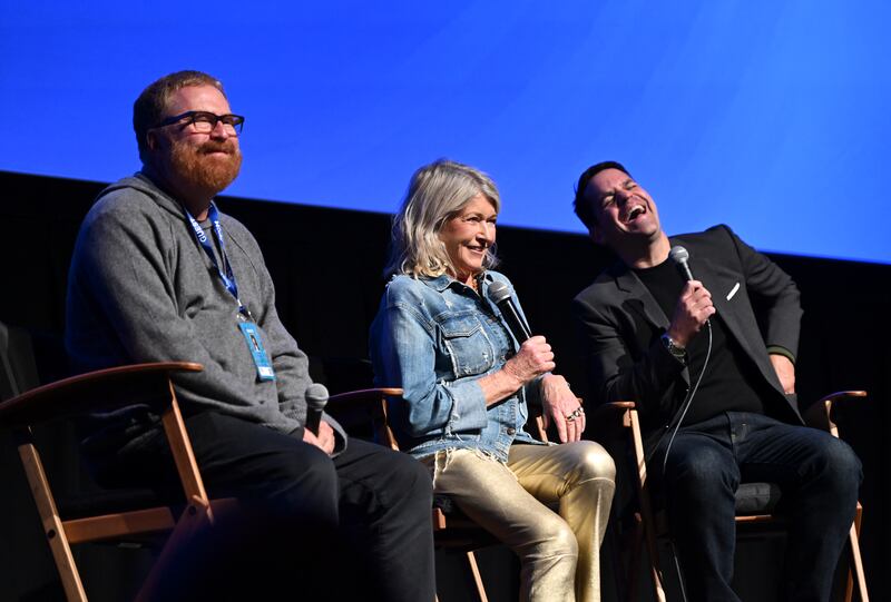 "TELLURIDE, COLORADO - SEPTEMBER 01: R. J. Cutler, Martha Stewart and Dave Karger attend a screening of \"Martha\" at the Telluride Film Festival on September 01, 2024 in Telluride, Colorado. (Photo by Vivien Killilea/Getty Images)"