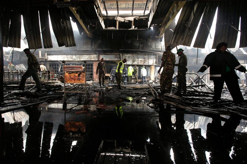The exterior of Nairobi's international airport was badly burned during the fire.