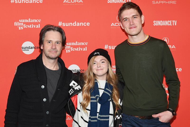 Actors Josh Hamilton and Elsie Fisher, with writer-director Bo Burnham, attend the ‘Eighth Grade’ premiere during 2018 Sundance Film Festival on Jan. 19, 2018, in Park City, Utah.