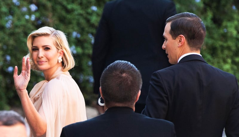 Jared Kushner and Ivanka Trump, left, arrive to the wedding of Misha Nonoo and Michael Hess in Rome, Friday, Sept. 2019.