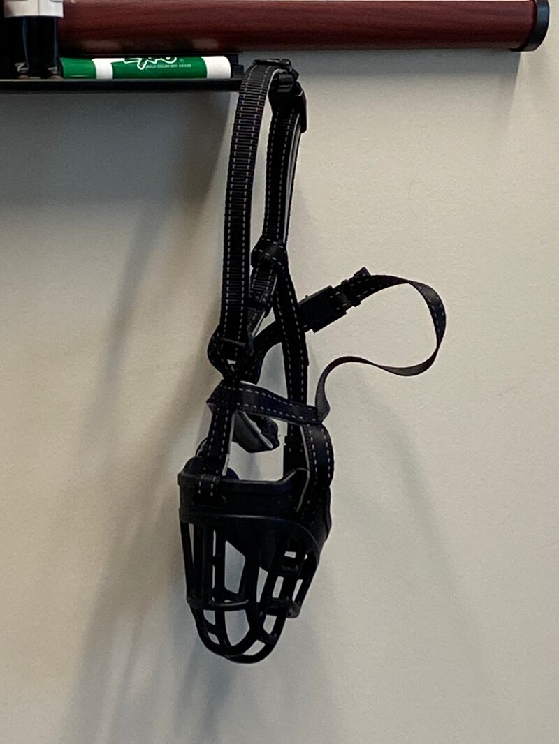 Inside was a black leather muzzle with nylon straps that looked to be made to fit a dog.