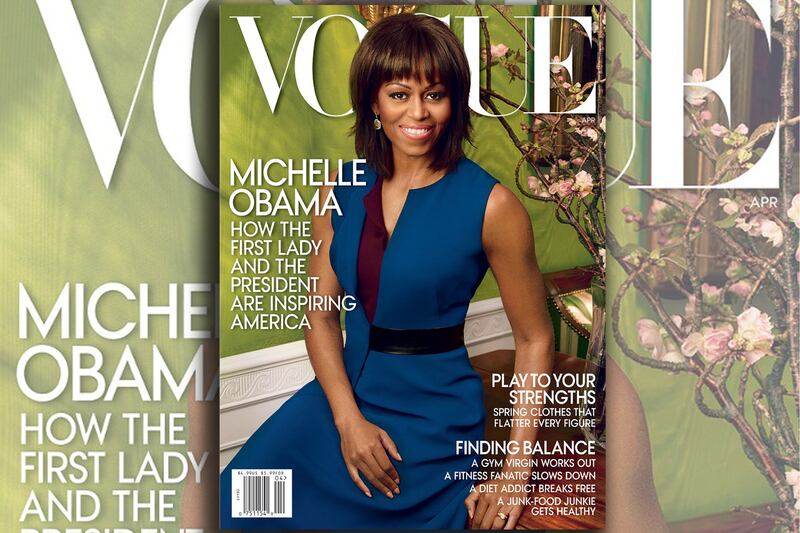 Michelle Obama’s much-anticipated Vogue cover was released Thursday, featuring the first lady in a blue Reed Krakoff dress as was previously reported. The image, shot by celebrity photographer Annie Leibovitz and styled by Vogue fashion director Tonne Goodman, marks Obama’s second main stage Vogue appearance. She last fronted the magazine in March 2009.