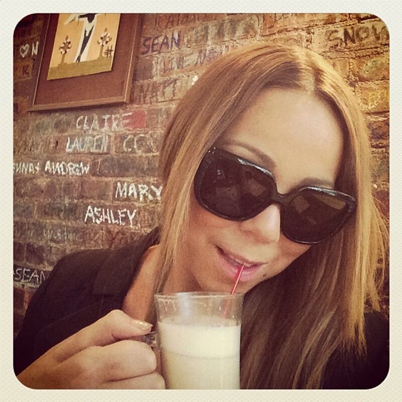 Pop diva Mariah Carey Instagrammed this picture of her sipping on some egg nog with thte caption, "My 1st Eggnog (JD said "gimme some of dat Eggnog")."