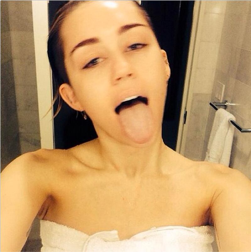Miley Cyrus posted this picture of herself fresh out of the shower this week. Her tongue is, naturally, out.