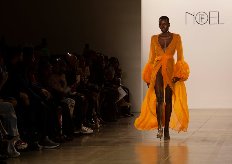 Felisha Noel opened her first boutique nine years ago, when she was 19; on the final day of fashion week, she held her first runway show. If the Brooklyn-born designer, who has dressed Beyoncé and Michelle Obama, had any beginner’s nerves, you couldn’t tell. Her collection, which featured gauzy, free, and often sheer designs, moved like a dream on models (even if three fell on the runway; they all got back up smiling).