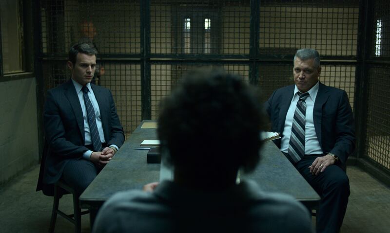 That’s most strikingly felt in the second episode of Mindhunter’s long-awaited sophomore season, which is now streaming on Netflix. Having been informed in 1979 about the ongoing quest to catch Kansas’ BTK killer (Sonny Valicenti), whose exploits were teased in recurring snapshots during Mindhunter’s first 2017 season, FBI behavioral science agent Bill Tench (Holt McCallany) meets with a man named Kevin Bright, who narrowly escaped BTK’s clutches after suffering three gunshot wounds to the head (his sister, Kathy, wasn’t so lucky). Unwilling to speak face-to-face, Kevin sits in the back seat of Tench’s vehicle; from the front seat, the agent questions him in detail about his ordeal. With their car located under a rumbling train overpass, the prolonged sequence is a master class in evocative tell-don’t-show suspense, as horror and sympathy escalate in tandem as we listen to this man’s nightmarish experience—all of which, the show demands, we recreate in our own mind.