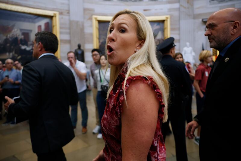 Greene parroted the conspiracy that “Big Pharma was given billions of taxpayer’s dollars for experimental covid vaccines,” which were then “forced on Americans, our military, and our children against their will.”
