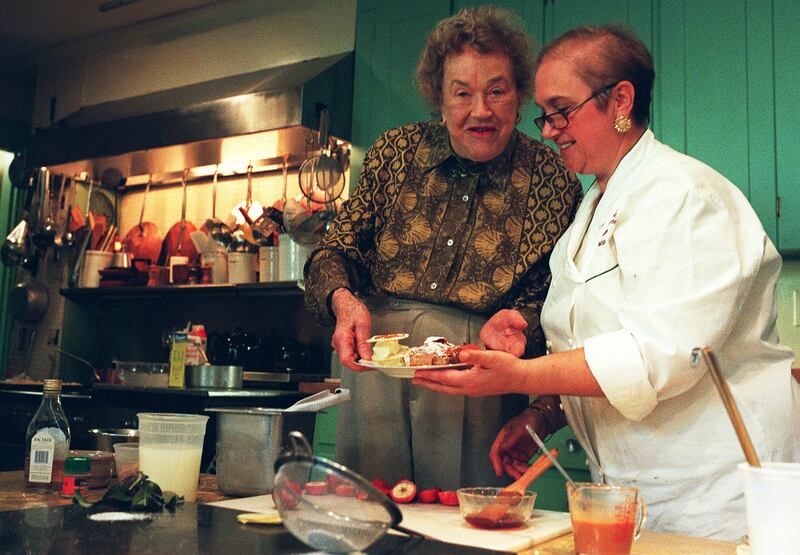 We sang, we danced and we ate risotto. One of my most treasured moments with Julia Child was when she came over to my house for dinner. It was not long after I opened Felidia, and she came over for dinner after I had appeared on her Public Television series, Cooking with Master Chefs. She wanted to learn how to make the perfect risotto, and that is exactly what we did. My entire family was present on that memorable Sunday. I fondly remember Julia swaying back and forth in time to the sounds of the accordion while humming along. That day, Julia was Italian and a part of our family. I loved every delicious moment of it. The menu included prosciutto and figs, orecchiette with broccoli di rape and sausages, mixed wild mushroom risotto, roasted veal shank “stinco” with rosemary, roasted potatoes and radicchio salad, and a nougat semifreddo.