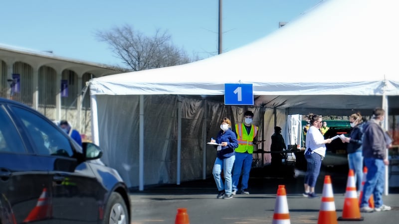 I then snaked between rows of plastic orange cones, passing through military checkpoints by turns. At last, I neared a small makeshift tent city, dotted with white-tarped structures and government-issued SUVs with blacked-out windows. Soldiers directed the vehicle into four parallel lanes like a mega car-wash in the suburbs.