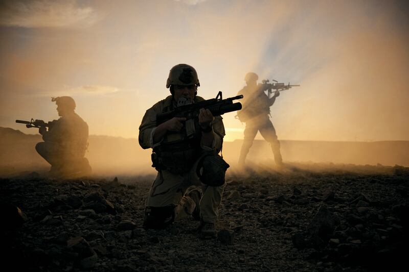 A U.S. Navy Seal looks toward insurgent movements from the rooftop of an observation post January 21, 2007, in Ramadi in the Anbar province of Iraq.