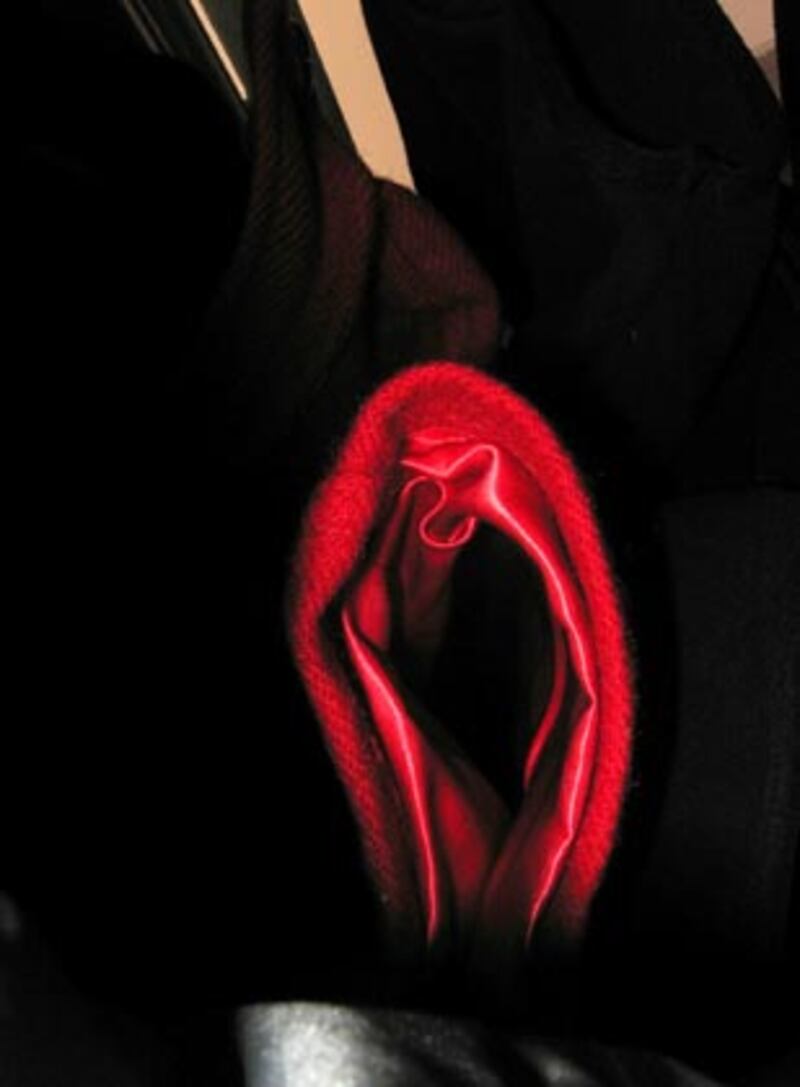 “Michael Weiner and I presented Brigid at the Gershwin Hotel Tuesday night series reading some of her work, and we became good friends,” Carson says. “She thought I was going to do straight reportage. She was so surprised—Oh my god, that came out of my closet?—and she immediately became very supportive of the project. The image is so lush, but she’s a fashion minimalist and has very few clothes.”