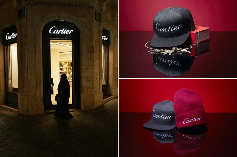 Purely as a joke, he said, Fahad soon had two knit hats embroidered with ‘Cuntier’ in the same typeface as Cartier’s scripty logo, fabricating the beanies in the same Bordeaux red as Cartier’s famous boxes. Initially, the hats were supposed to be a one-off, but then passers-by starting asking Fahad where they could buy the Cuntier headgear. He gave six of them to his friends at the cool new downtown store American Two Shot, which sold a snap-back style for $50 and the beanie for $45.