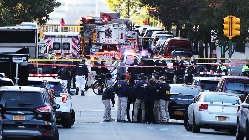 Security forces cordon off the area after a man drove a truck along a bike lane near the West Side Highway.