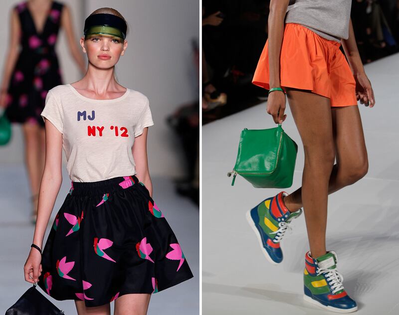 Fashion editors basically come to New York for two reasons. One: there are major advertisers who would be offended if these journalists didn't make an appearance at their shows. And two: Marc Jacobs shows here. On Monday night, Jacobs held his show for Marc by Marc Jacobs, and it was filled with the kind of cool, hipster sportswear he's known for. The colors of the American flag ran through the collection; a pair of navy shorts with a red stripe going down them, a red swimsuit with navy trim—and lots of very Marc-ish coats and parkas accessorized with two-toned plastic visors. Two highlights included rainbow hightops—and a self-referential “MJ NY ’12” T-shirt.