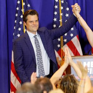 Gaetz, who is currently under federal investigation for sex trafficking and abuse of a minor, railed against “the corrupt forces in the Department of Justice and the FBI” and complained that the private venues’ refusals to host the pair amounted to an infringement on their freedom of speech.