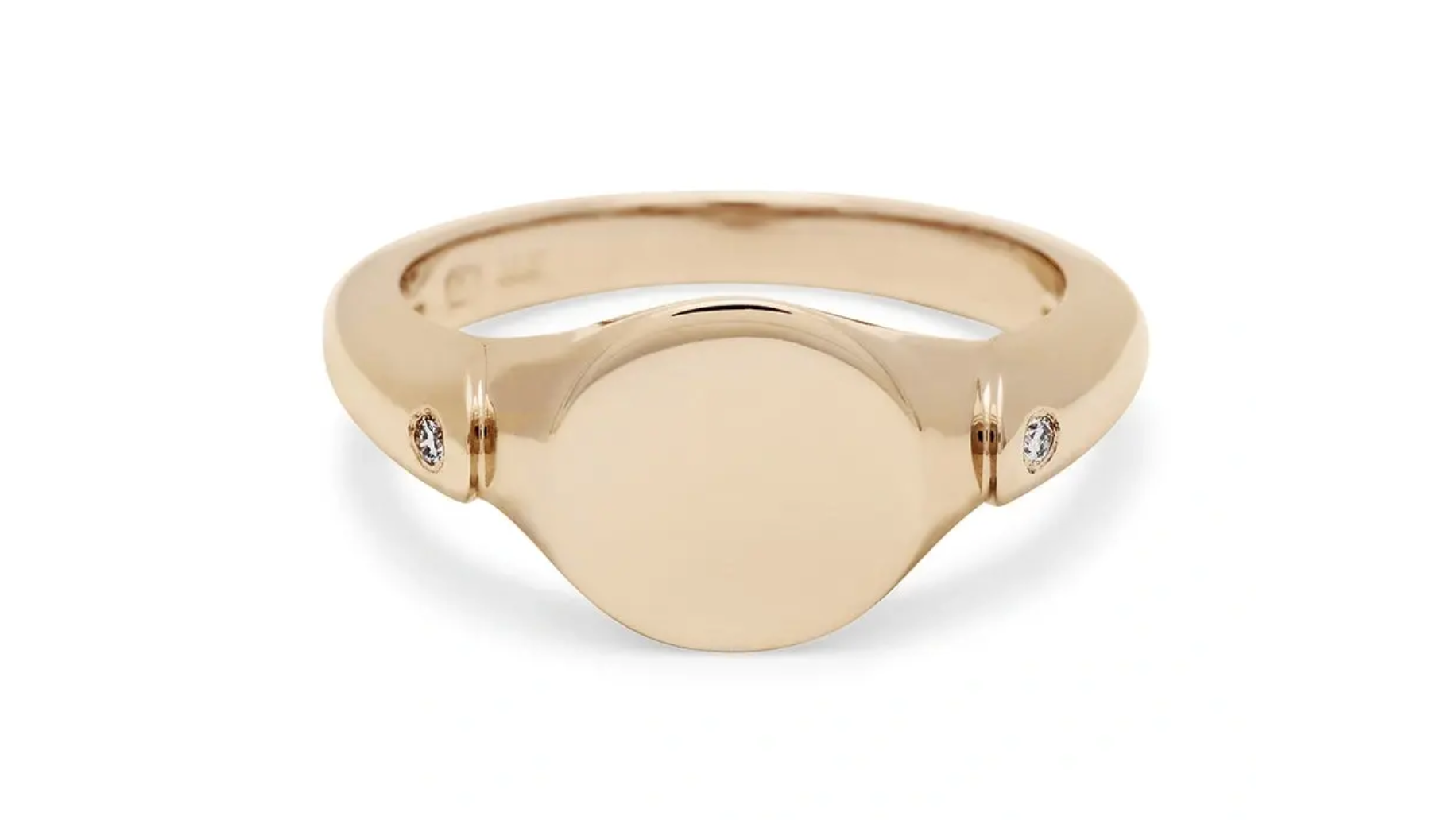 Anna Sheffield’s signet ring is made from 14K gold and has diamond accents on each shoulder. But the real kicker is the ability to add your own custom engraving like a sentimental date or meaningful initials.