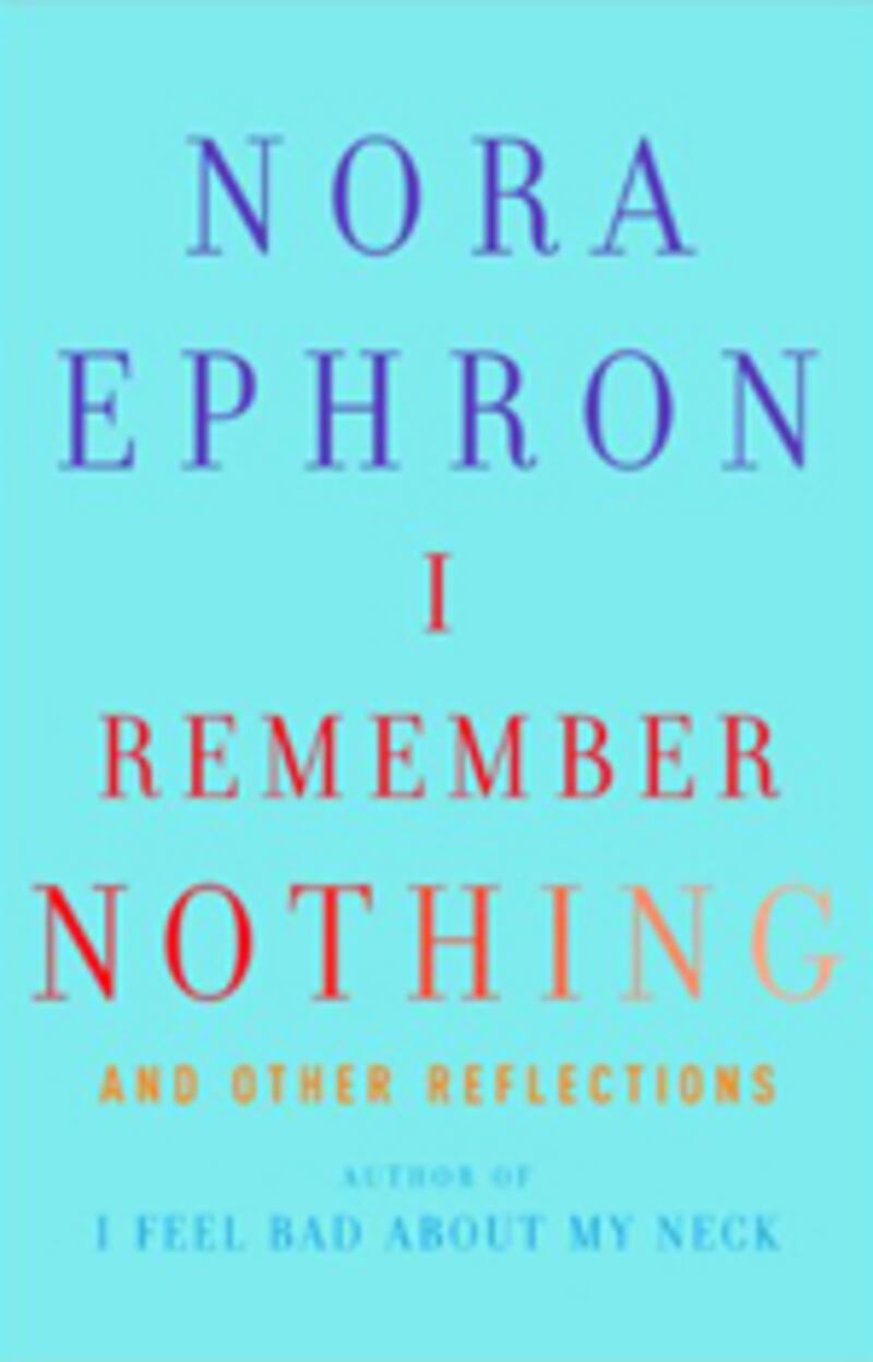 I Remember Nothing is on the brief side: just 160 pages, ostensibly organized by pontification: "The D Word" ("I survived. My religion is Get Over It. I turned it into a rollicking story. I wrote a novel. I bought a house with the money from the novel."); "I Just Want to Say: The Egg-White Omelette" (people who think they are good for you are "victims of the informational cascade"); "My Life as a Meat Loaf" (Graydon Carter's Monkey Bar menu boasts a Nora-entrée). None of this is dissimilar—thank God—to her 1972 Esquire piece, "A Few Words About Breasts."