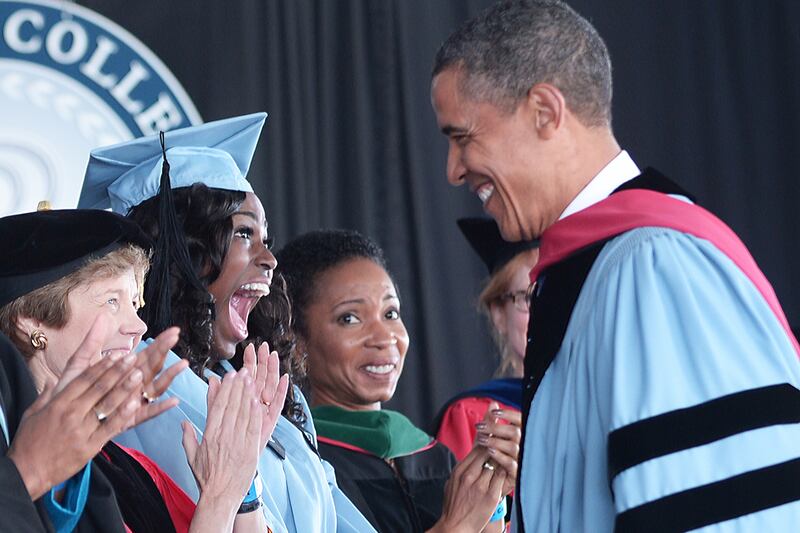 The morning wasn’t all so earnest—Obama sprinkled his speech with plenty of moments of levity. When the president noted that he’d graduated from Columbia College in 1983, when students still used Walkmen and Moonwalked like Michael Jackson, a student in the crowd shouted for him to “Do it!” “No,” Obama laughed. “No moonwalking today.” Later, stressing the need for more women to enter male-dominated fields like computer science and engineering, Obama drew cheers when he delivered a message to the students from First Lady Michelle: "You can be stylish and powerful, too."