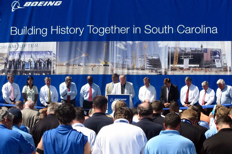 Maybe so, but consider the economic environment. In particular, consider South Carolina. Its 10.9 percent jobless rate in July was tied with Michigan for third place, trailing only Nevada and California. A tech consortium’s 2009 call for training to work at the new North Charleston plant drew 10,000 applications. Another one this summer drew 5,500. More than 450 people have completed phase one of the training since 2010; nearly half of them were unemployed when they applied. Boeing has spent upward of $750 million on the South Carolina plant, created 9,000 construction jobs to build it, added 1,000 jobs in the past year, and plans to add many more.