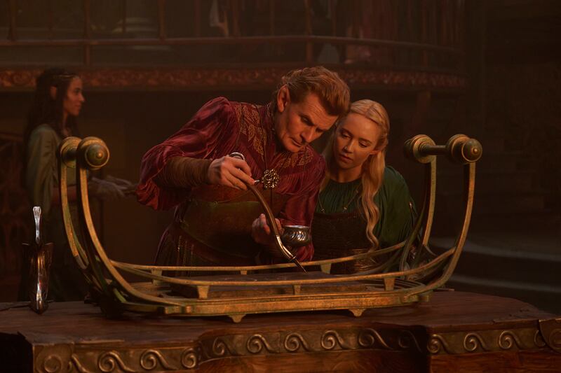 As the elves come to terms with the deceit of Halbrand (a.k.a. Sauron), Celebrimbor is left to stew in Eregion, unaware that the sexy smith who helped him forge the three rings of power is, in fact, The Dark Lord. Stew he does, sashaying through his forge in glittering robes with a series of indignant looks at his underlings and foppish quips.