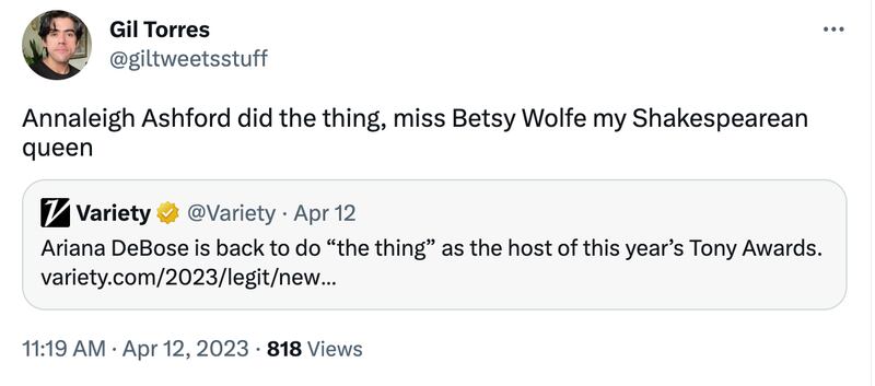 Ariana DeBose hosted shows before she went viral. She “did the thing” before it was cool. Specifically, she was a Tony Awards host—and a great one. She used the opportunity to sit on Andrew Garfield’s lap and cradle his face. Relatable!