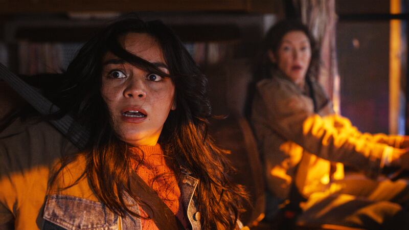 Since Iris is the name of Stefani’s estranged grandmother, she heads home to research the woman. There, she’s greeted warmly by dad Marty (Tinpo Lee) and given the cold shoulder by brother Charlie (Teo Briones), who blames her for ignoring him in the same way that their mom Darlene (Rya Kihlstedt) abandoned them years earlier. Pressing her uncle Howard (Alex Zahara) doesn’t get her anywhere, although her aunt Brenda (April Telek) tips her off to Iris’ location—a remote woodland cabin that, Stefani discovers, is shielded by castle-like defenses.
