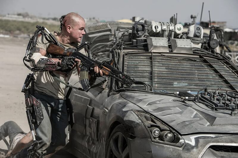 This delayed, disappointing prioritizing of brawn over brains is a problem that would plague Blomkamp’s movies going forward. His consecutive follow-ups failed to match the acclaim or box office of District 9, while blatantly borrowing elements from it. 2013’s Elysium, starring a chrome-domed Matt Damon, relocated to a futuristic, pollution-choked Los Angeles, while once again putting a hunk of technology in the sky—in this case, a utopian, orbiting paradise where the wealthy have decamped. In 2015 came the widely mocked Chappie, about a cloyingly impressionable, childlike robot; it returned Blomkamp to a Johannesburg of gun-toting gangsters, urban battlegrounds, and sterile laboratories, and found him once again adopting a mockumentary framing device he’d quickly abandon.