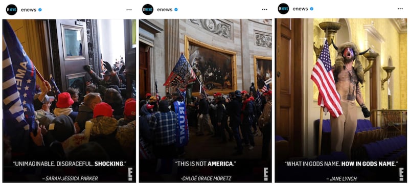 A year ago we were all in shock over what was happening at the U.S. Capitol during the insurrection. No one knew how to process it. That included the folks over at E!, as in the celebrity news channel and former home of the Kardashians.
