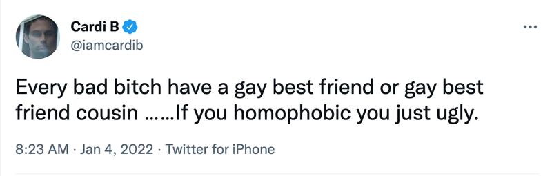 I hear GLAAD just updated its mission statement after Cardi B sent this tweet.