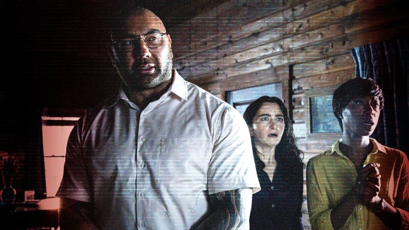 Knock at the Cabin wears its inspirations on its sleeve, with sequences that recall fantastic horror-thrillers of years past. At times, you could even make a game out of it. There’s The Mist! Oh, and Funny Games. Look, it’s Mother! and The Strangers! But the movie never comes off like mimicry. Instead, it feels classically pulp, like it’s adapted from an old-fashioned novela that scared the wits out of readers back in the 1930s. Yet, it’s distinctly modern, with allegorical messaging that certainly seems like a sign of the times.