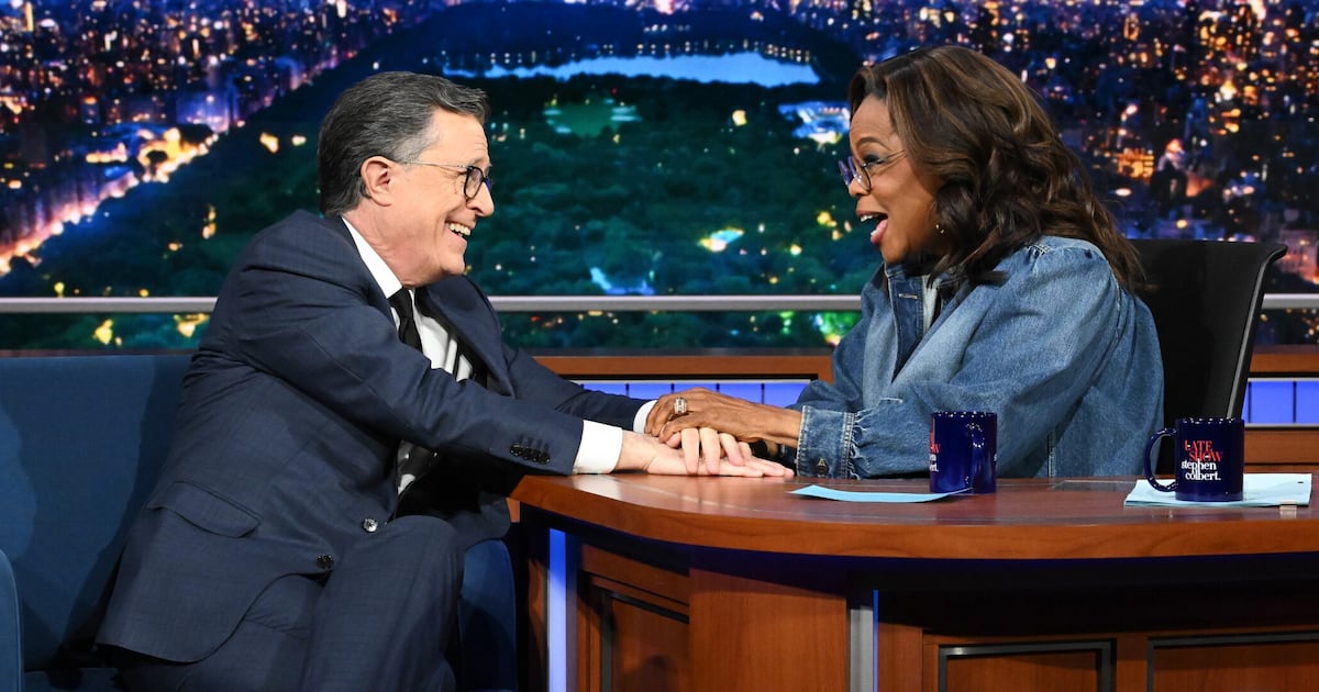 “Don’t go all Oprah on me now...” Colbert responded with a smile. Seconds later, the two switched seats.