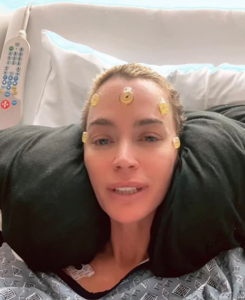 In one clip, she showed her long blonde hair being buzzed off while she sat in a hospital gown with electrodes attached to her head.