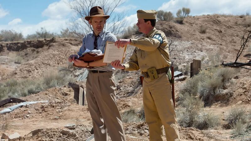 A radio report playing over the opening scene paints a bleak picture of the casualty list “on the eve of another Independence Day,” an onscreen graphic states that 61 countries are at war, there are more than 40 million casualties, and it is 766 days before Hiroshima. A yet unnamed figure plays golf using his car's headlamps as his only light source in the dusty, dark setting before having a eureka moment. Soon, we learn that WWI veteran Dr. Frank Winter (John Benjamin Hickey) is a brilliant physicist who doesn’t play by the rules and ruffles all the wrong feathers within this government facility. While this archetype is overplayed, Frank’s journey takes unexpected deviations in exploring the ethics of a weapon with the power to vaporize cities—and Hickey delivers a deeply nuanced performance.
